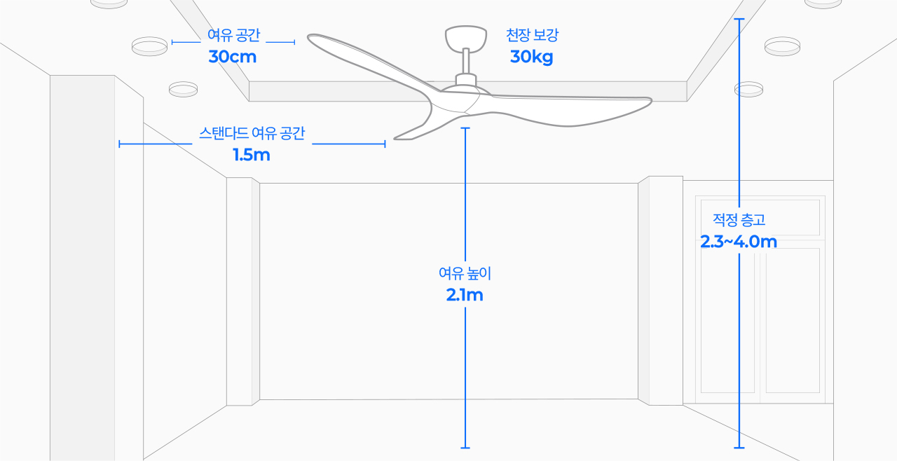 ½Ç¸µÆÒ ¼³Ä¡ ÈÄ ½Ç¸µÆÒ ¹Ø¸éºÎÅÍ ¹Ù´Ú±îÁö ÃÖ¼Ò 2.1m ÀÌ»ó °ø°£ È®º¸°¡ ÇÊ¿äÇÕ´Ï´Ù.